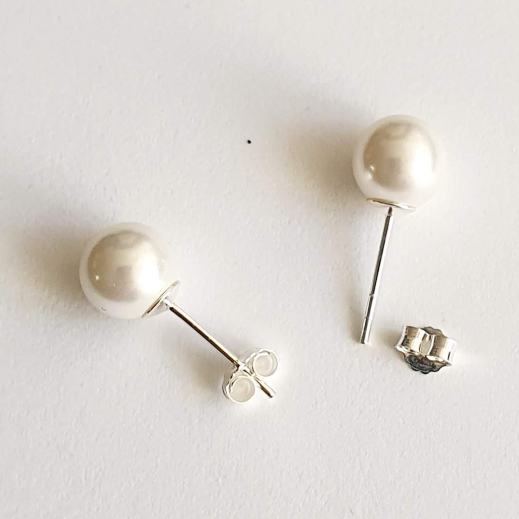 Arracades de plata i perla blanca rodona Nacarada 8 mm, les perles són una peça bàsica de joieria que s'associa a l'elegància, la distinció i el prestigi