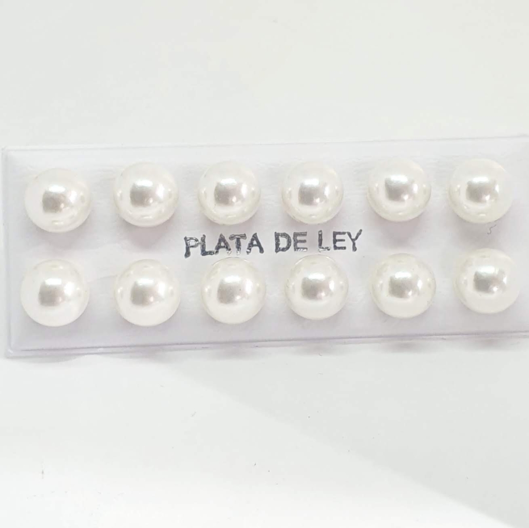 Arracades de plata i perla blanca rodona Nacarada 8 mm i tancament de pressió preu del parell 2,15 €
